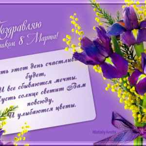 Оригинальные картинки со стихами и красивые открытки с 8 марта. - поздравительные открытки любимым женщинам и девушкам. Анимационные и блестящие открытки поздравления на 8 марта прекрасной половине человечества в Международный Женский День. Большая коллекция красивых поздравительных открыток с наступающим женским весенним днем для мамы, сестры, бабушки, подруг, сотрудниц и коллег. Поздравьте любимых женщин, подруг с весенним праздником 8 марта! Отправьте им поздравление по электронной почте или по телефону через Вайбер, Ватсап.