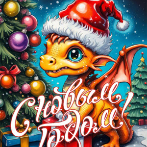 Открытка с 2024 Новым годом! (Дракон)