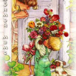 Цветы для самой доброй, красивой и любимой мамочки. Блестящая анимированная картинка с мальчиком поздравляющий свою м...